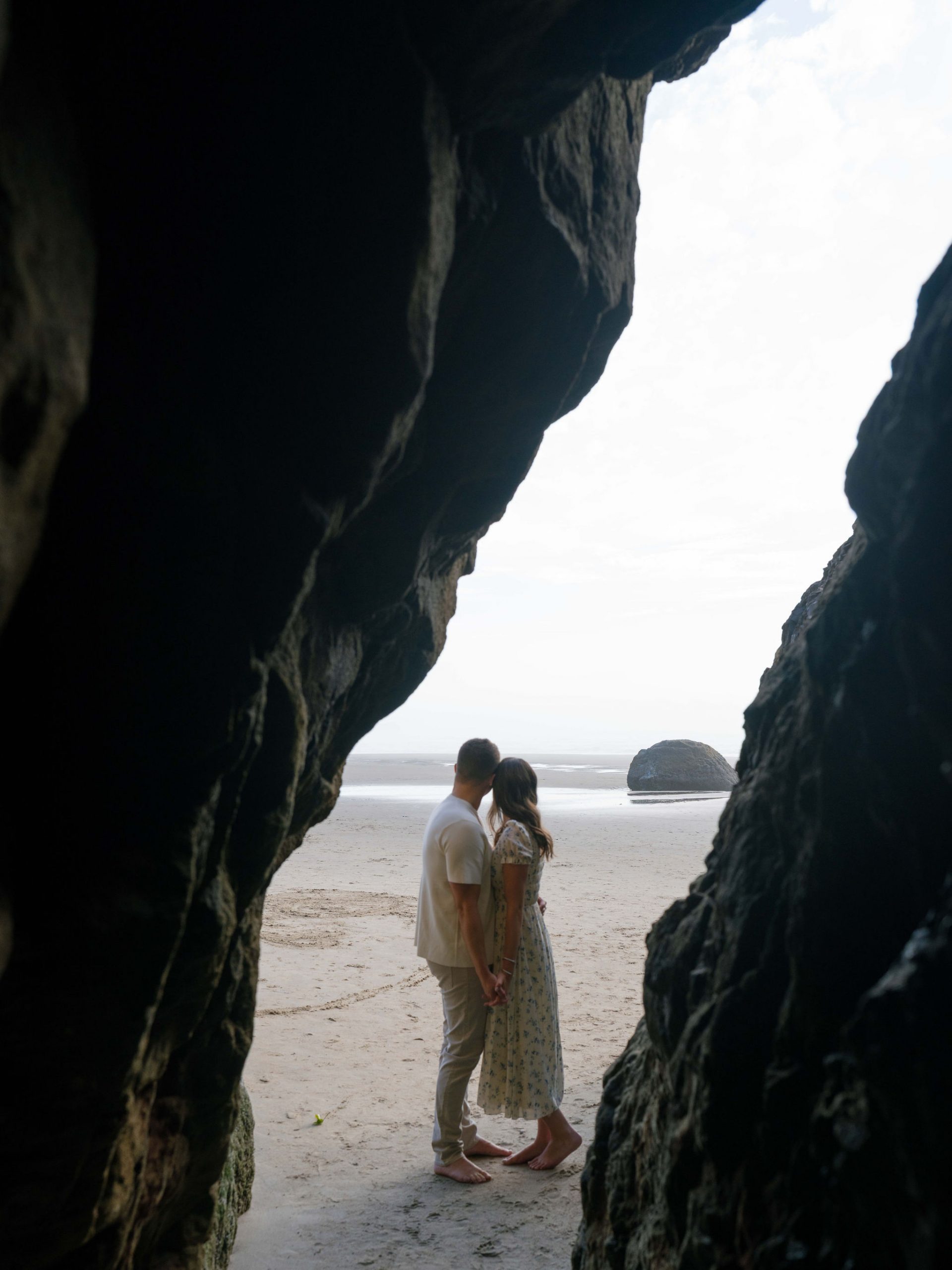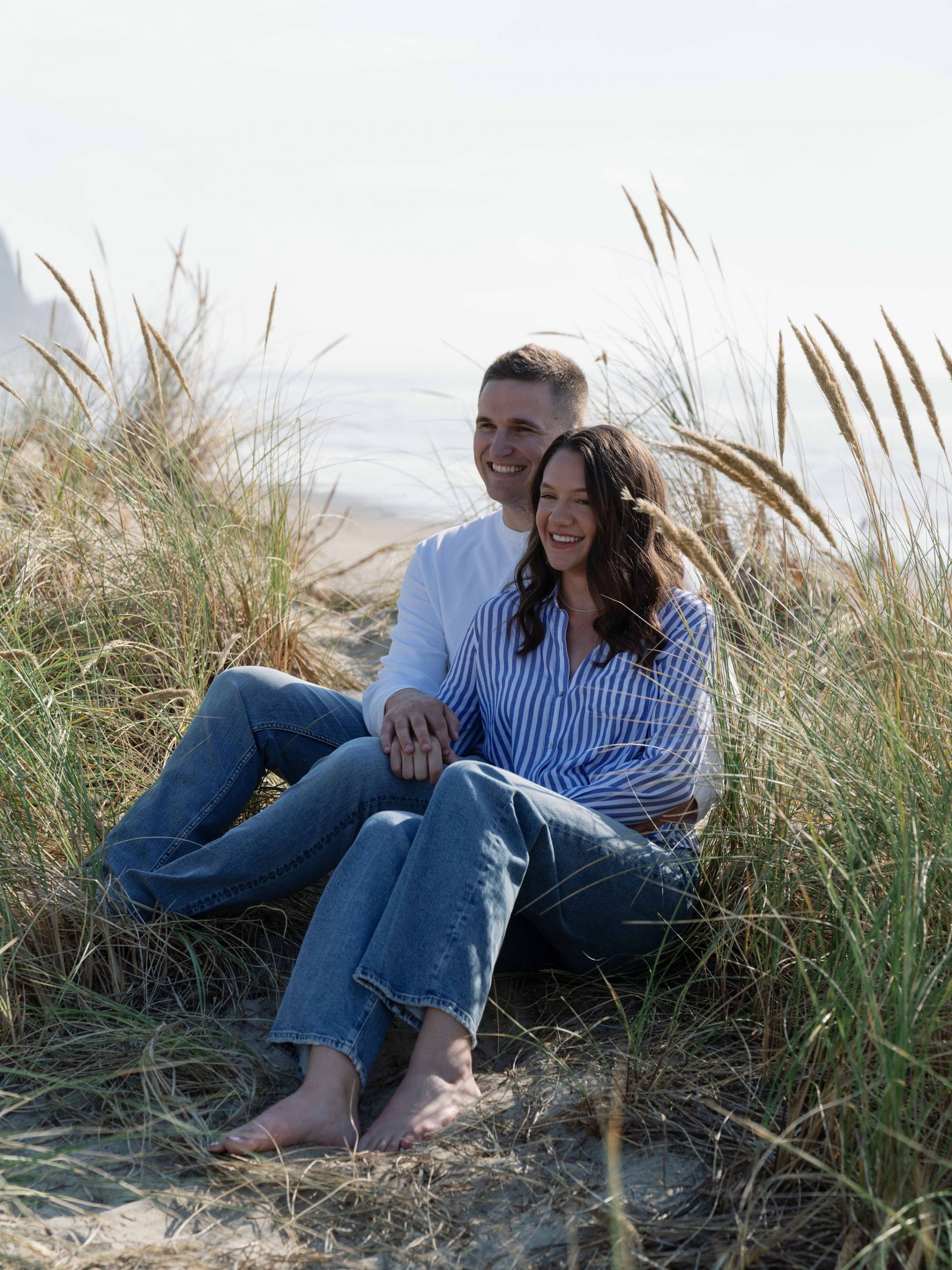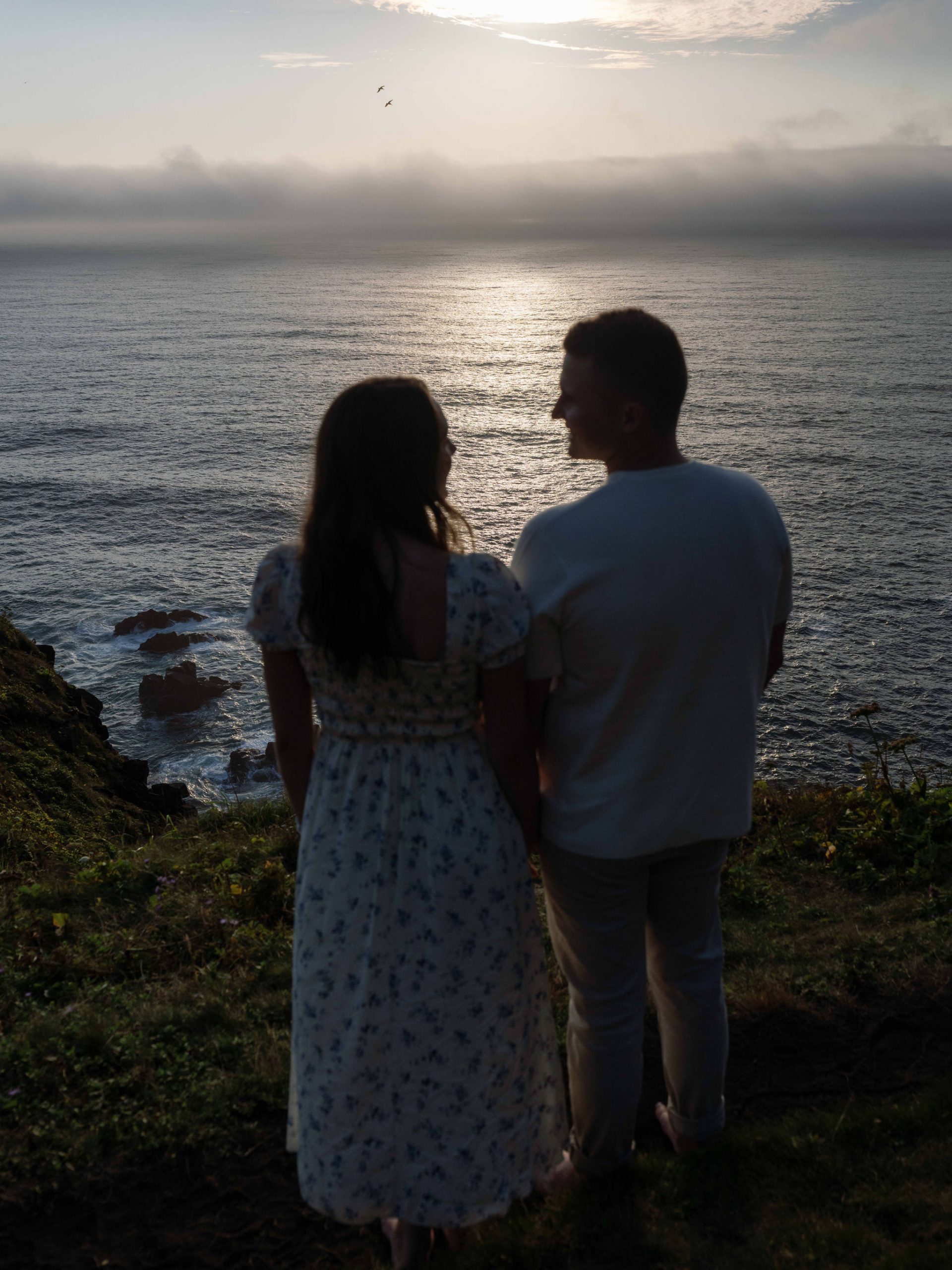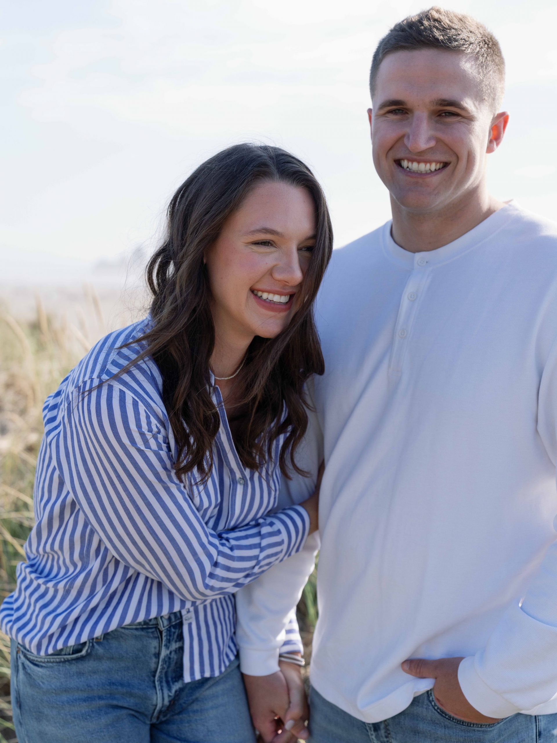 Claire and Ryan’s engagement session was more than just photographs — it was an experience shaped by place and light. From quiet moments in the dunes to the awe of standing on cliffs above the sea, their story unfolded naturally against the backdrop of the Pacific Northwest.