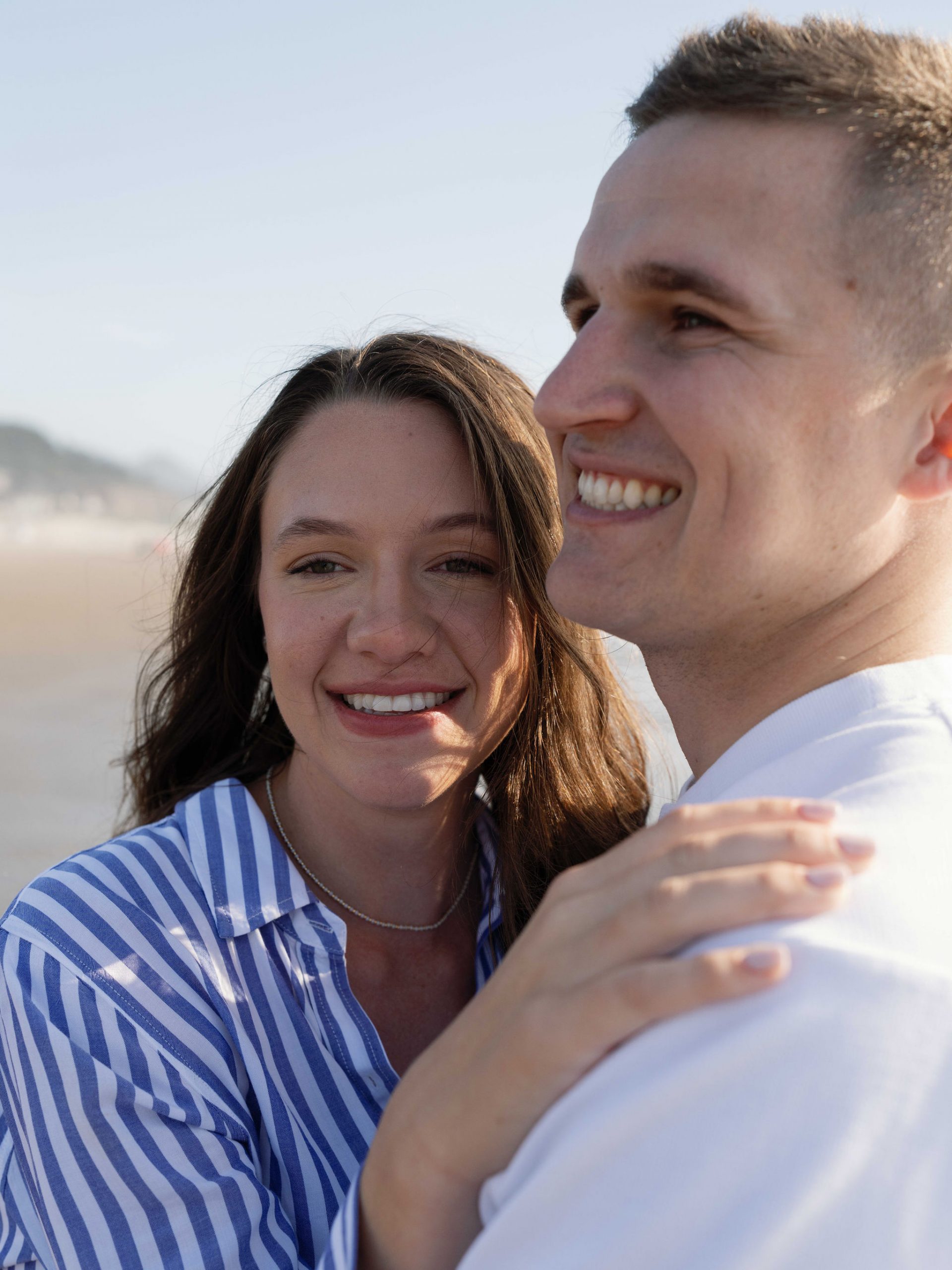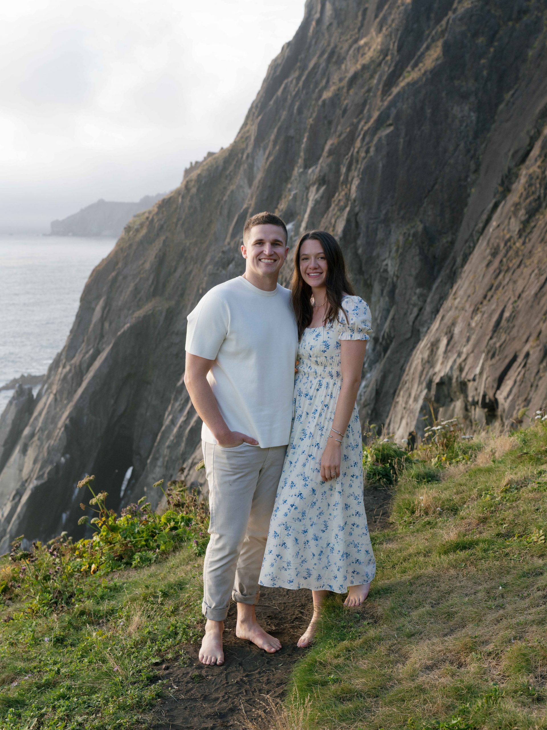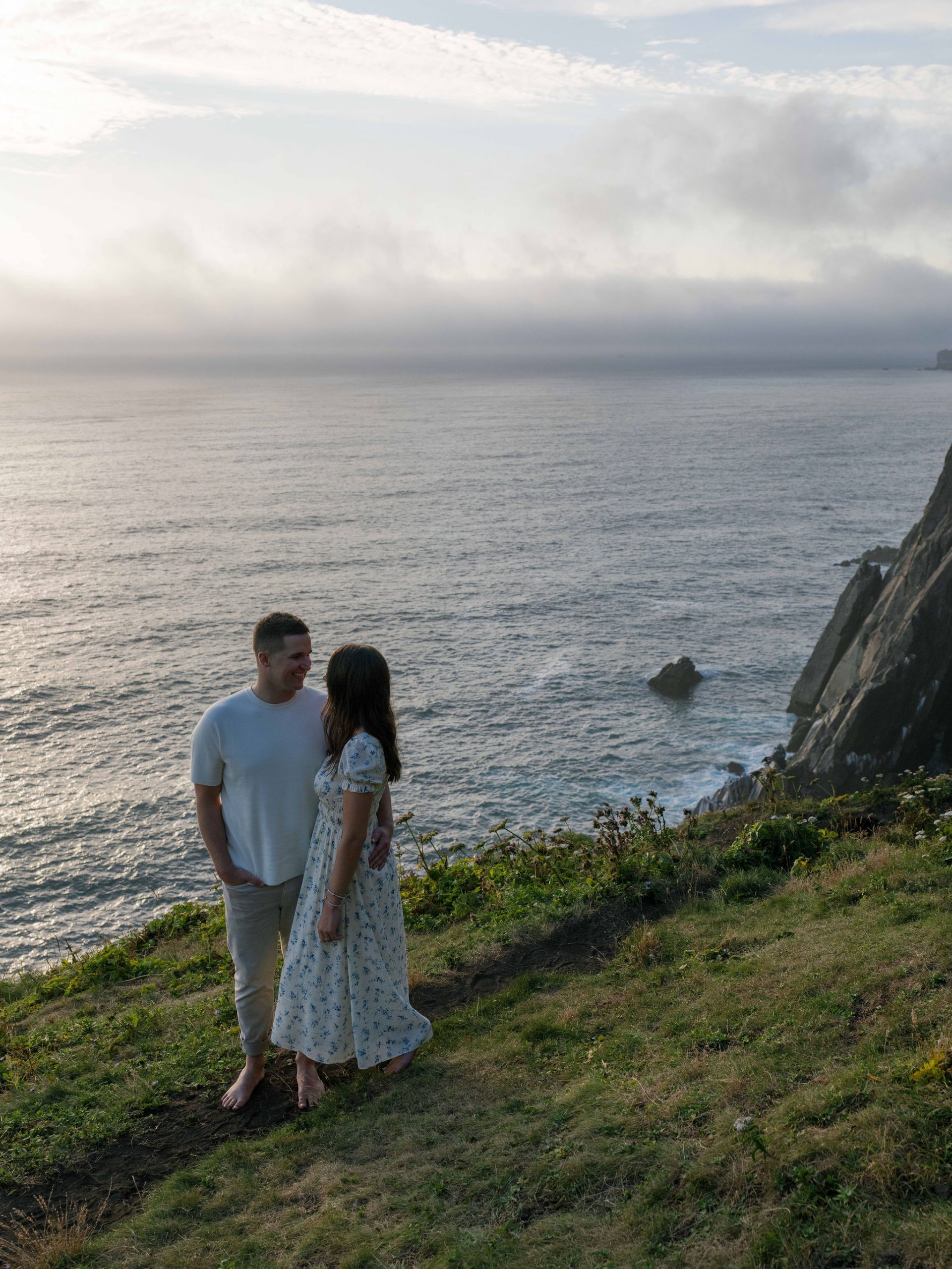 Claire and Ryan’s engagement session was more than just photographs — it was an experience shaped by place and light. From quiet moments in the dunes to the awe of standing on cliffs above the sea, their story unfolded naturally against the backdrop of the Pacific Northwest.