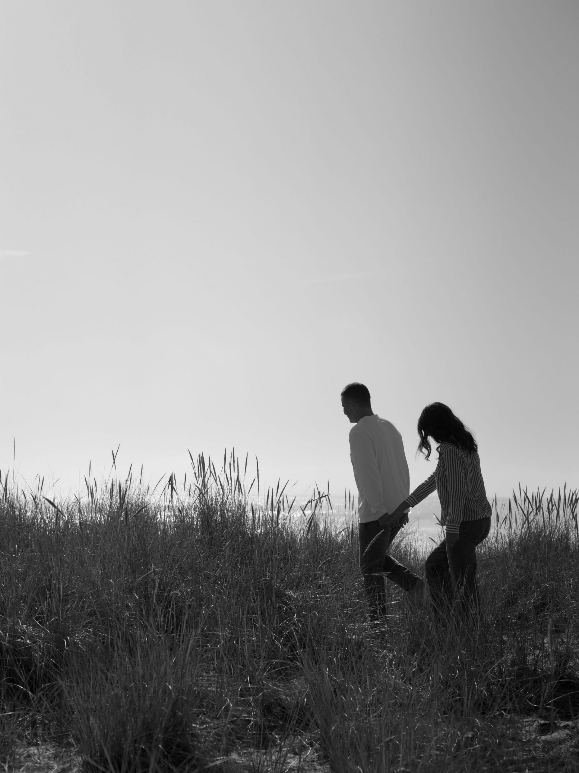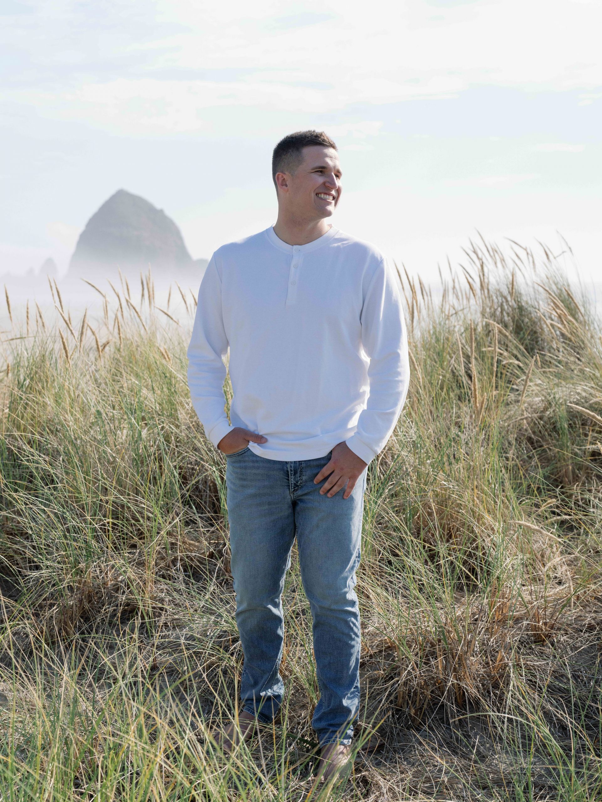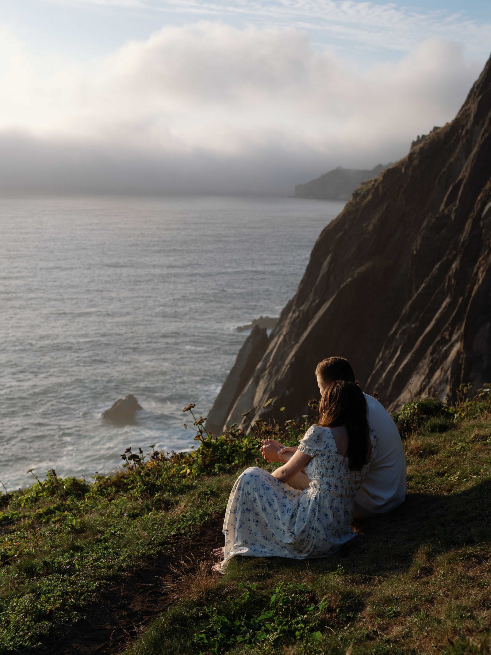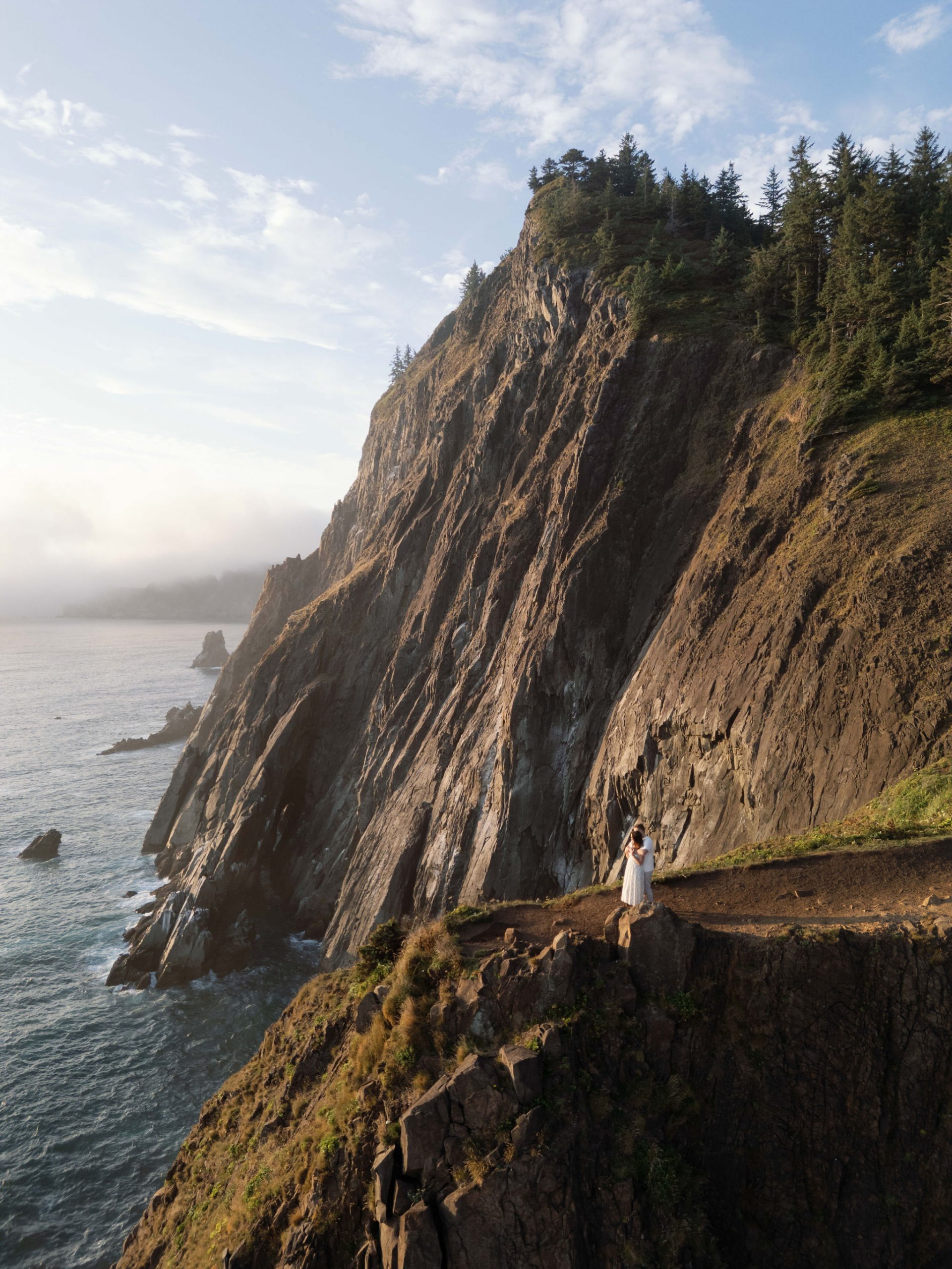 Claire and Ryan’s engagement session was more than just photographs — it was an experience shaped by place and light. From quiet moments in the dunes to the awe of standing on cliffs above the sea, their story unfolded naturally against the backdrop of the Pacific Northwest.