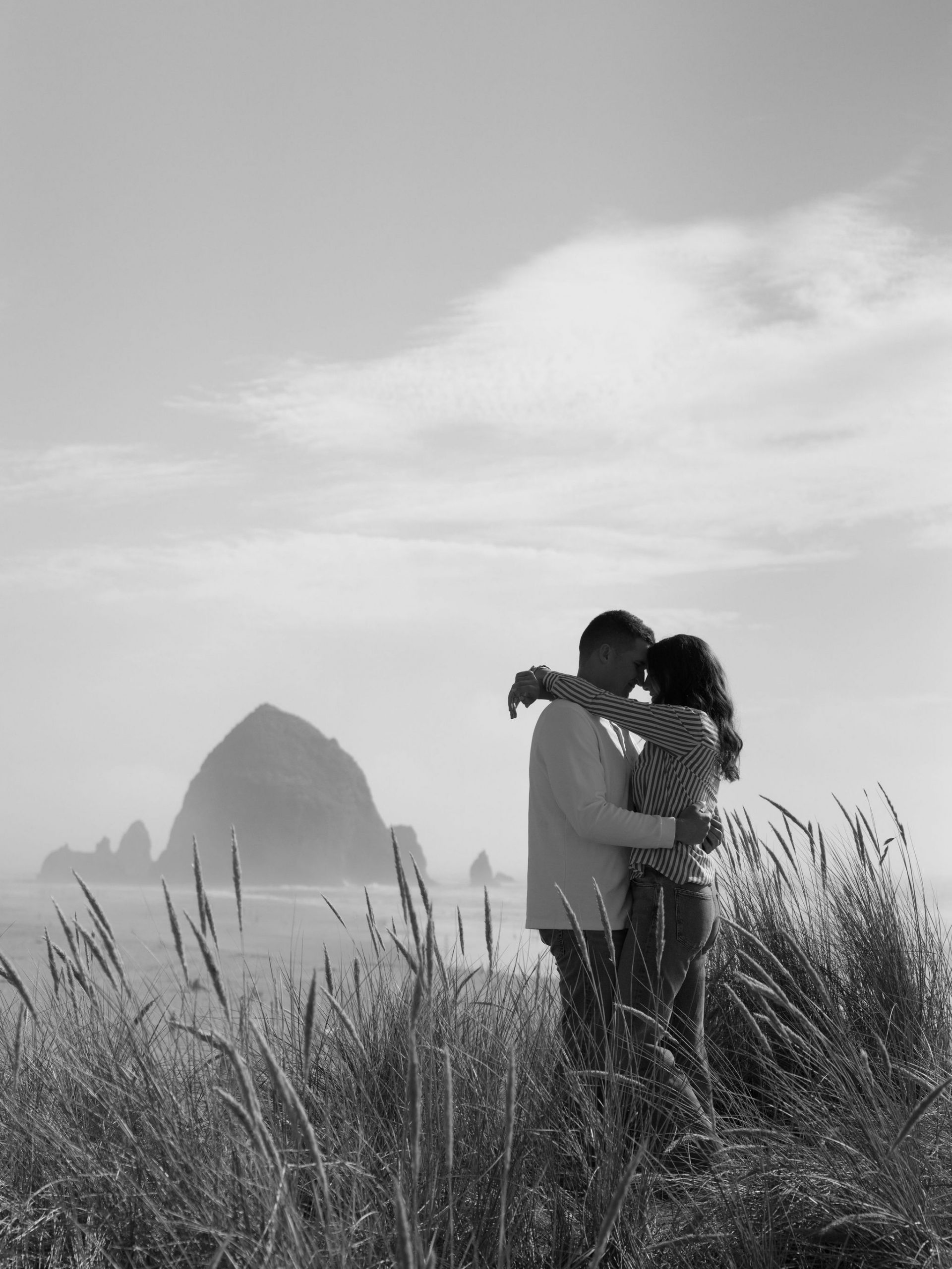 When Claire and Ryan reached out about celebrating their engagement on the Oregon Coast, we dreamed up a session that would showcase the beauty and variety of this iconic landscape. From grassy dunes to sweeping shorelines, hidden coves to dramatic cliffs, their evening together felt like a true love letter to the Pacific Northwest.